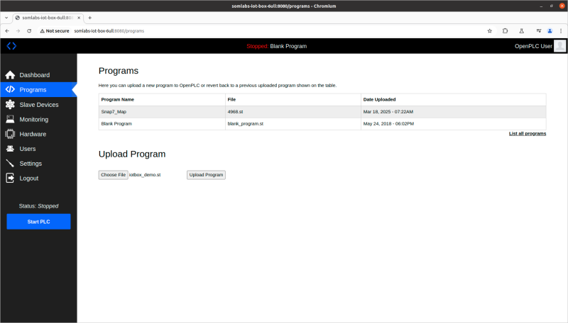 It can be uploaded to SL-IoT-BOX OpenPLC runtime in the Programs window: