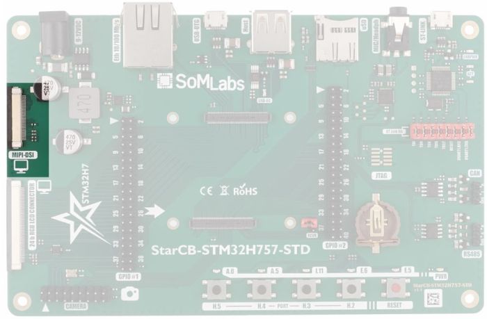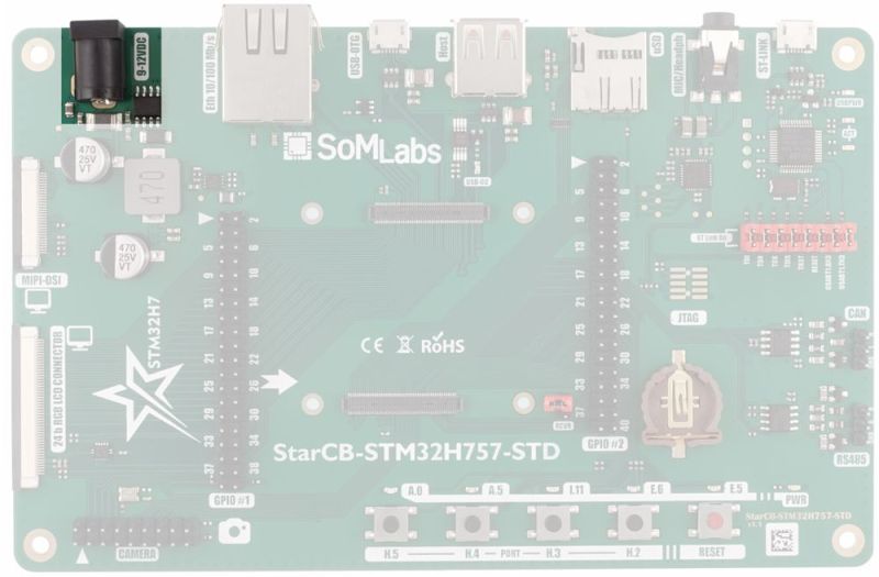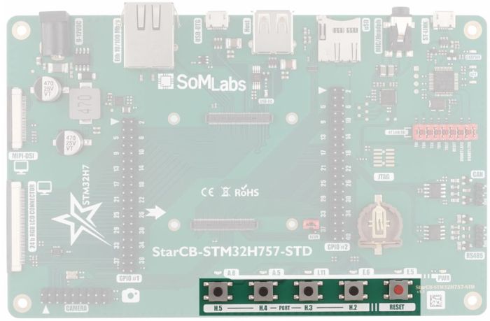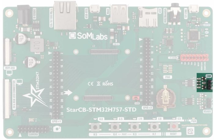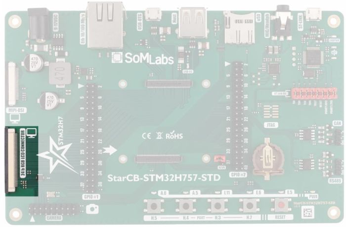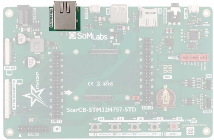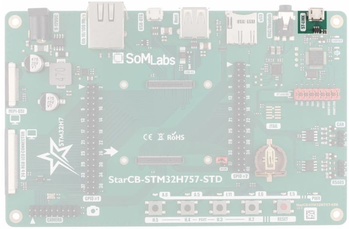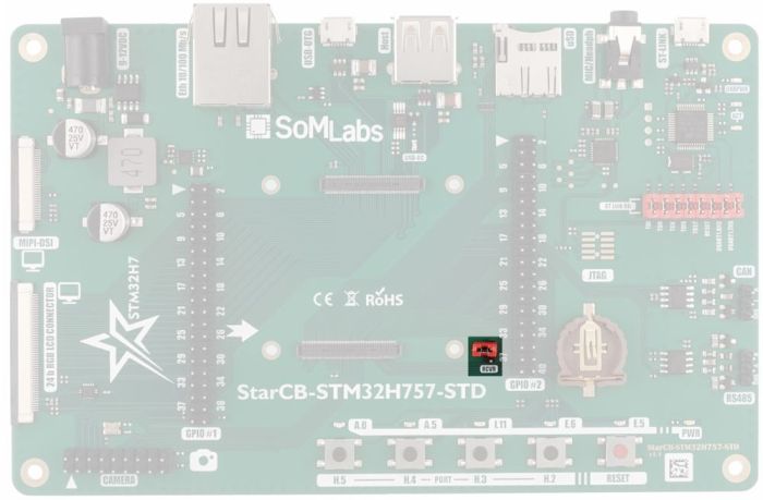 | StarCB-STM32H757-STD board with StarSOM-STM32H757 installed |